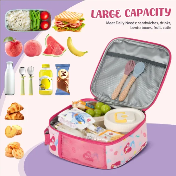 Kids Insulated Lunch Bag With Water Bottle Holder-Pink