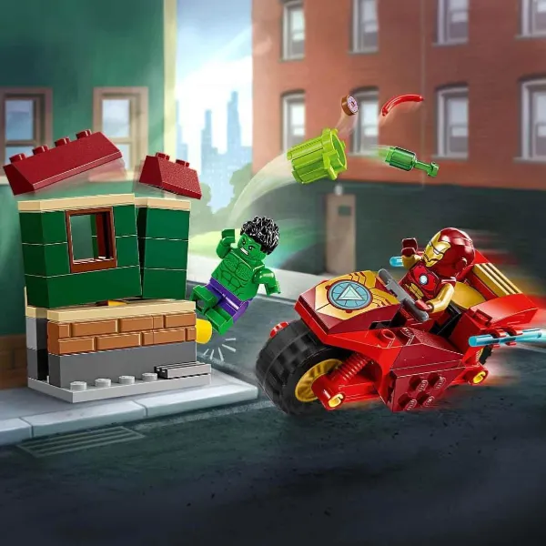 • Brand: LEGO • 68 Pieces • Ages 4+ Years • LEGO Marvel playset includes Iron Man and Incredible Hulk minifigures, plus Iron Man’s buildable, push-along toy motorcycle and a buildable house